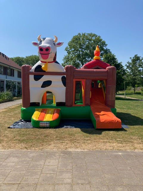 Springen, klimmen, glijden en rennen: met onze boerderij multiplay hoeven kinderen zich geen moment te vervelen! Dit springkussen is niet alleen een lust voor het oog, maar biedt ook eindeloos veel speelplezier voor kinderen van alle leeftijdscategorieën. Van de grote glijbaan tot de diverse attributen op het luchtkussen, de boerderij multiplay zorgt voor urenlang vermaak! Het springkussen heeft een royale afmeting van 550 x 500 cm, waardoor er meer dan genoeg ruimte is voor meerdere kinderen tegelijk. Of ze nu willen springen, klimmen, glijden of spelen, er is altijd genoeg ruimte. Daarnaast is de boerderij multiplay stevig gebouwd en wordt het regelmatig gecontroleerd, zodat je erop kunt vertrouwen dat het altijd veilig is. Onze boerderij multiplay is de perfecte optie voor kinderfeestjes, bedrijfsevenementen, gemeentefestivals of andere gelegenheden waarbij kinderen aanwezig zijn. Het geeft niet alleen de kinderen de kans om zich uit te leven, maar zorgt er ook voor, dat de ouders of begeleiders kunnen ontspannen en genieten.
