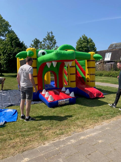 Wil je jouw feestje, evenement of open dag opvrolijken met een geweldig springkussen? Huur dan onze multiplay Krokodil! Met een afmeting van 480 cm breed en 400 cm lang, is dit maatje kleiner perfect voor de kleintjes onder ons, maar ook voor kinderfeestjes tot 12 jaar is de Krokodil de ideale attractie! Dit populaire luchtkussen biedt iedereen de ultieme combinatie van fun, actie en avontuur. De Krokodil is voorzien van verschillende obstakels en glij mogelijkheden. Hierdoor is het springkussen niet alleen ideaal voor kinderfeestjes, maar ook voor scholen, clubs of verenigingen.